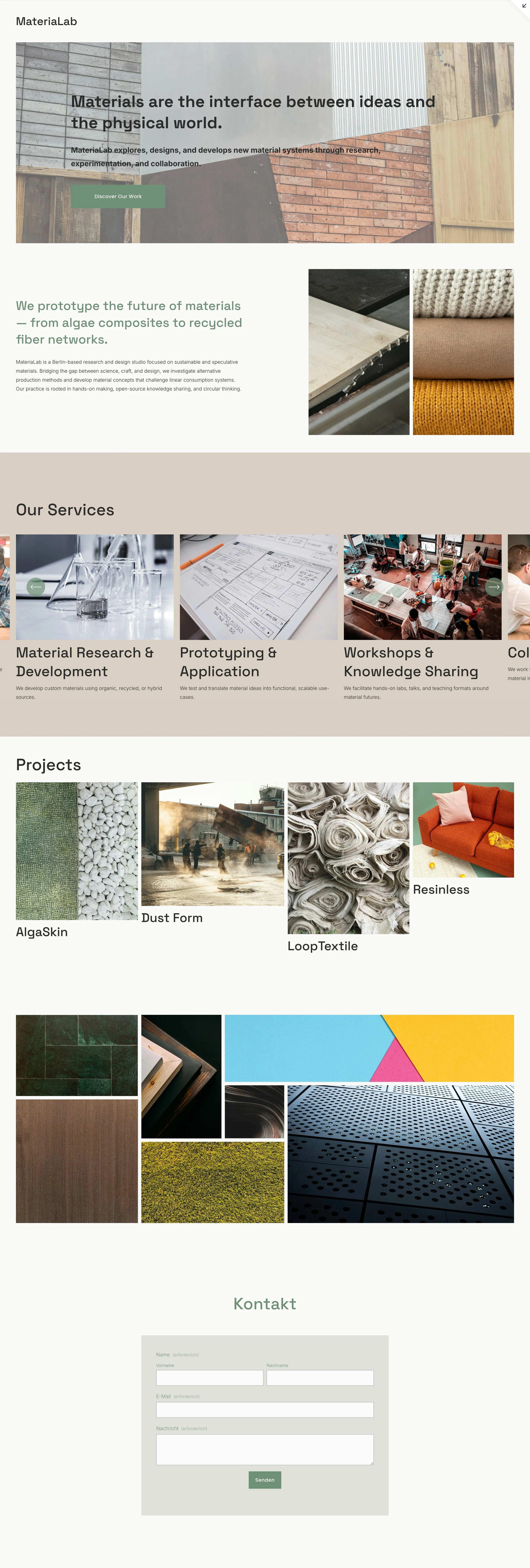MateriaLab is a creative studio specializing in innovative materials and their application in architecture and design. The client was looking for a modern website with a clean layout and strong visual presence. Their previous site lacked both style and structure.